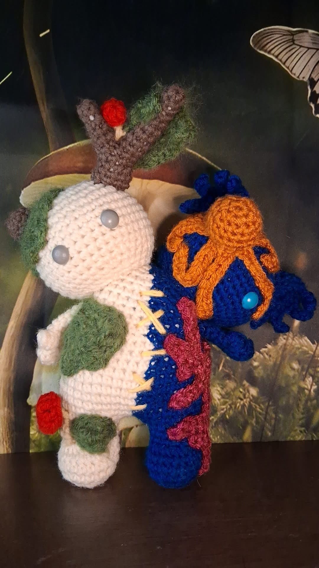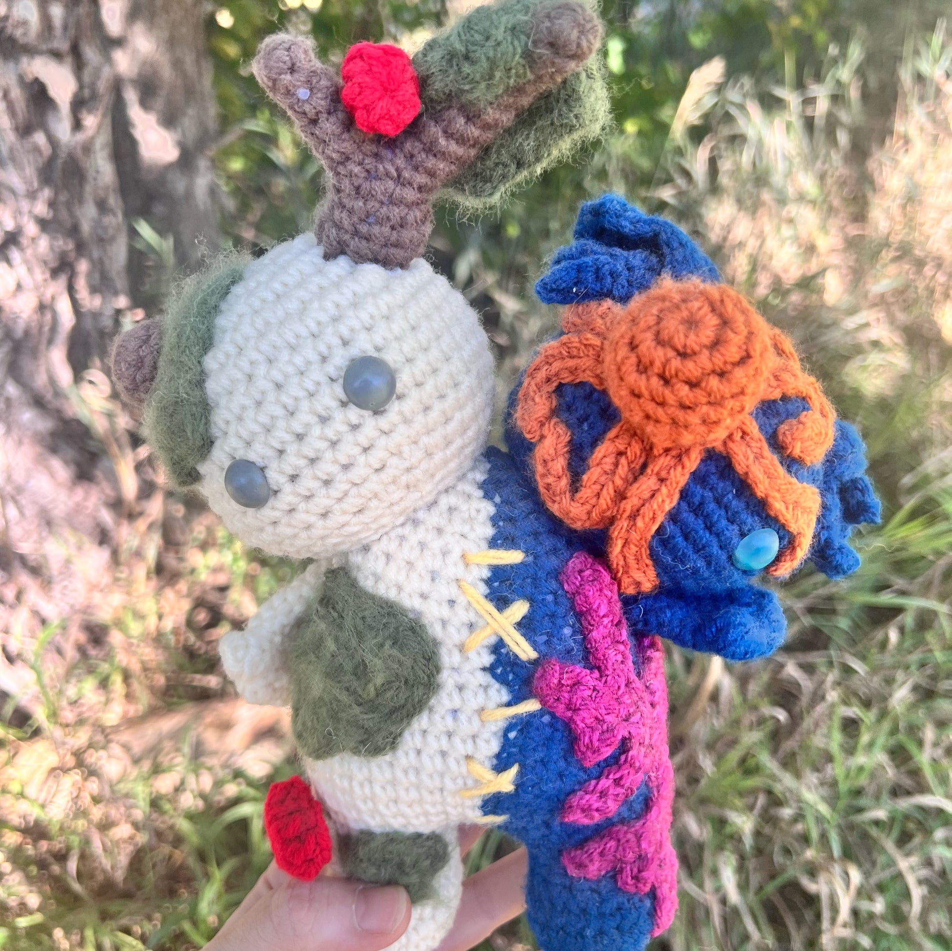 The Terrible Twos are conjoined companions born of chaos and cuddles. A tangle of opposing natures bound together in yarn and whimsy.
